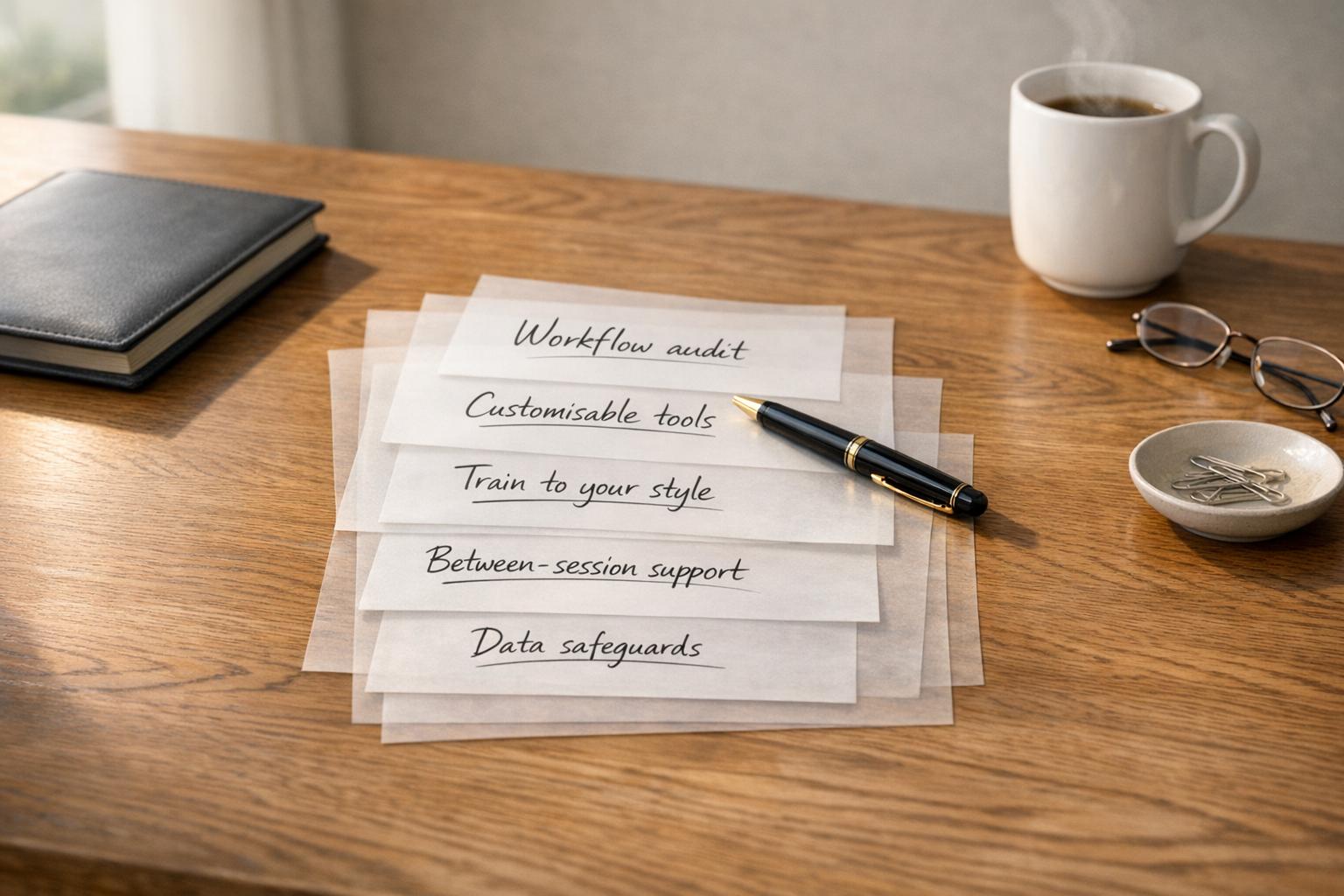 Integrate AI into leadership coaching: audit workflows, pick customisable tools, train AI to your style, extend between-session support and safeguard client data.